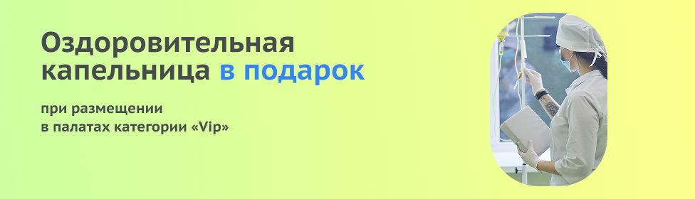 Оздоровительная капельница в подарок при размещении в палатах категории «Vip». Узнать подробности или записаться на прием можно по тел. 8 (831) 282-99-99